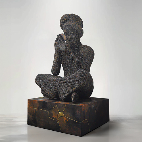I integrate ghungroos, beads, and pipes—crafted by artisans whose skills carry generational lineage. These elements enter my work with its own quiet rhythm and include tradition, memory and craft. It reminds me that creation is not a solitary act; it is carried by many hands. These details open up space in the sculpture—for viewers to pause, for stories to enter, and for cultural memory and craftmanship to be seen and felt.